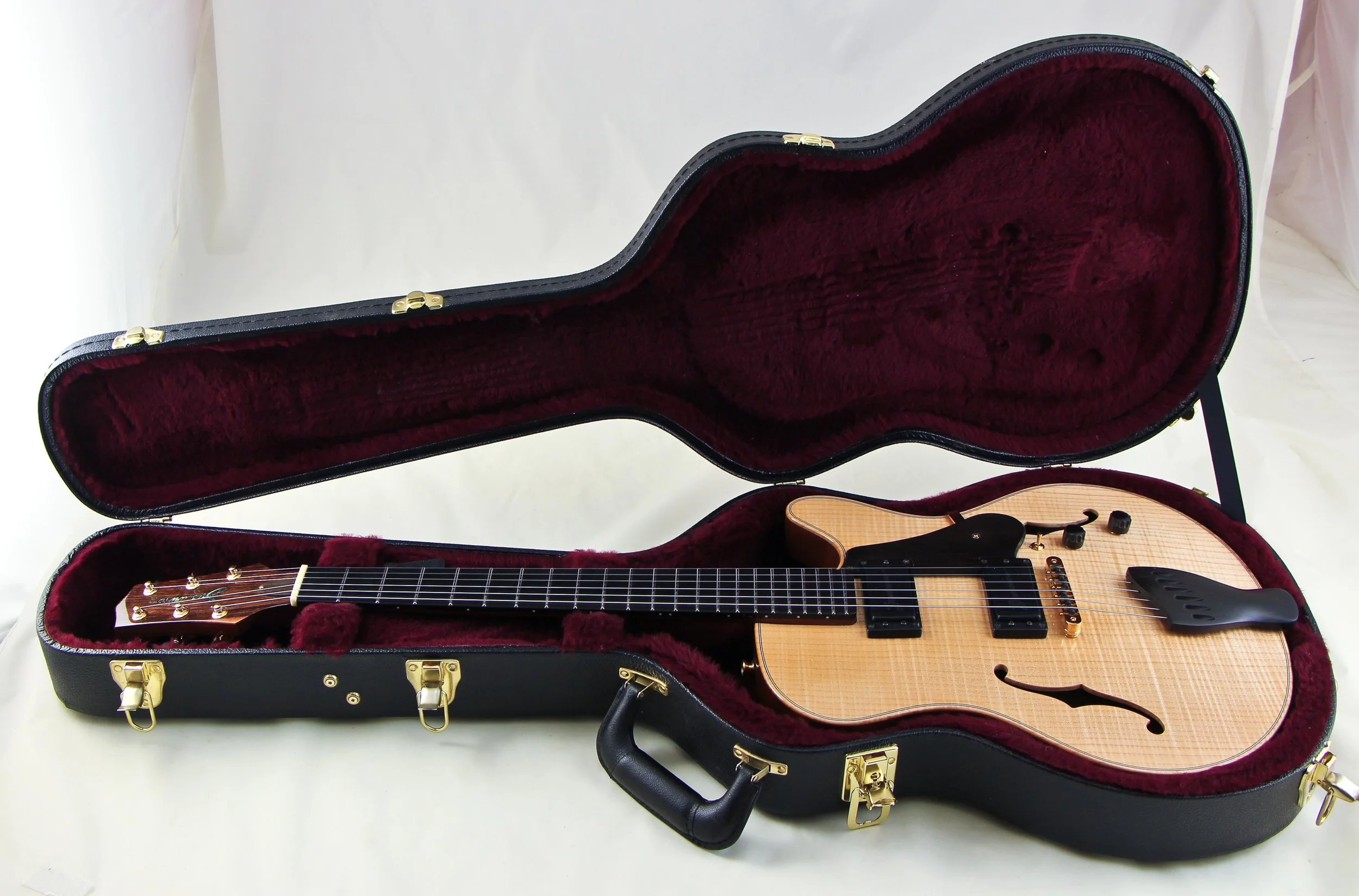 body wood: 1 piece honduras mahogany or 2 piece sapele african mahogany fully hollowed out